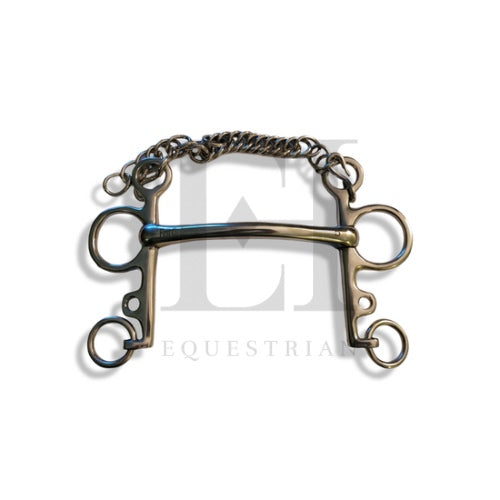 This pelham bit features a mullen mouthpiece crafted from German stainless steel.